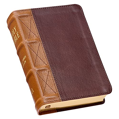 The Saddle Tan and Butterscotch Large Print Compact King James Version Bible delivers the best of both worlds: great portability in an easy-to-read format. Not only is this compact Bible's size ideal for travel, but it is slightly larger than average 10-point text size reduces eye strain.