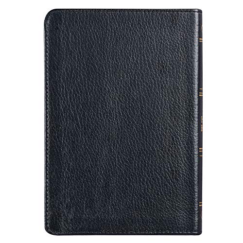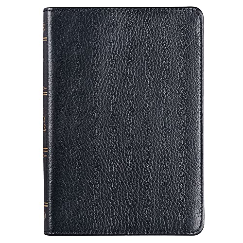 Slip the Black Full Grain Leather Compact King James Version Bible into your purse or backpack for optimal convenience and accessibility wherever your day may take you. Whether at home, the office, a coffee shop, the park, or at church, you will appreciate the compact size and clean design of this Bible. It is sure to be a favorite for home or away.