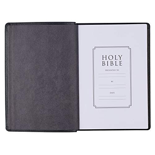 The Black Full Grain Leather Large Print Thinline King James Version Bible with Thumb Index carries all the luxury features you would expect from a well-made Bible, and it will make a meaningful gift to celebrate a special life event. A presentation page is included in the front of the Bible where you can mark such an event. Consider presenting the Black Full Grain Leather Large Print Thinline King James Version Bible with Thumb Index on the occasion of a Baptism, retirement, graduation, or promotion.
