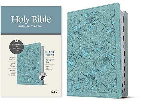 KJV Personal Size Giant Print Bible Filament Enabled Edition (Red Letter LeatherLike Floral Leaf Teal Indexed)