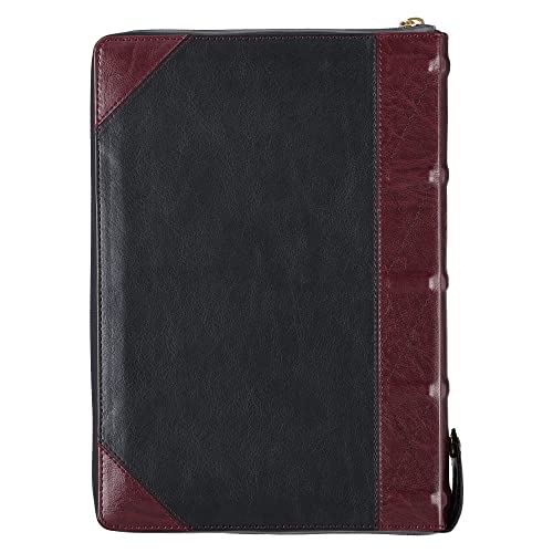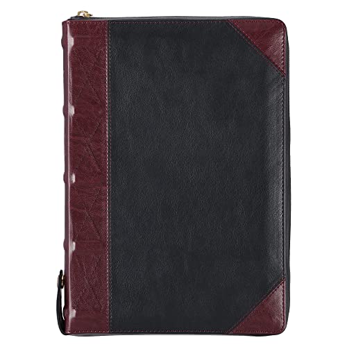 With its neat exterior zippered closure and treasure trove of information, the Burgundy and Black Faux Leather King James Version Study Bible with Thumb Index and Zippered Closure will become your go-to Bible for studying the Word. It also makes a fantastic gift to celebrate a husband or son's milestone birthday or retirement.