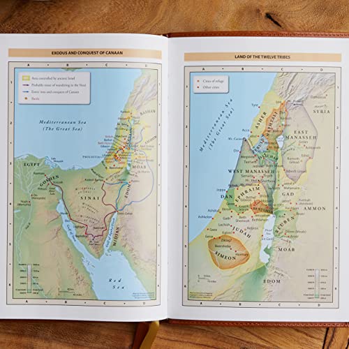 • Full color maps show a visual representation of Israel and other biblical locations for better context