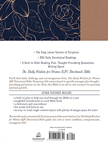 Daily Wisdom for Women KJV Devotional Bible. Featuring 365 entries keyed to specific passages plus thought-provoking quotations on the faith, this Bible is an all-in-one resource for personal spiritual growth.