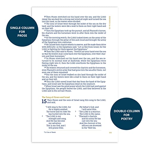Passaggio Setting Bibles allow the literary structure of each passage to determine the way you see Scripture on the page. This unique use of columns enhances natural readability while also allowing for more efficient use of the page.