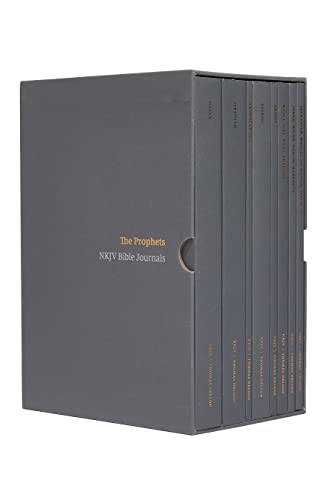 The Prophets box set of NKJV Bible Journals includes 8 volumes covering the Old Testament books of the major and minor prophets: Isaiah, Jeremiah, Lamentations, Ezekiel, Daniel, Hosea, Joel, Amos, Obadiah, Jonah, Micah, Nahum, Habakkuk, Zephaniah, Haggai, Zechariah, and Malachi.