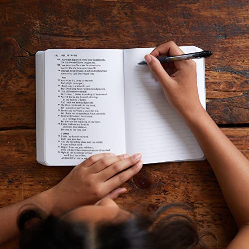 - Full-lined pages next to Scripture provide plenty of space to reflect, journal, or create art next to your favorite verses