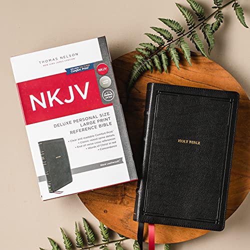 NKJV Deluxe End-of-Verse Reference Bible Personal Size Large Print Leathersoft Black Red Letter Comfort Print: Holy Bible New King James Version