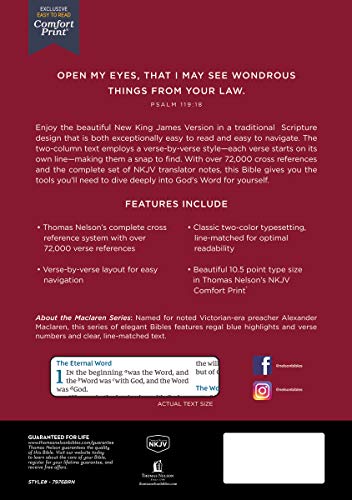 About the Maclaren Series: Named for noted Victorian-era preacher Alexander Maclaren, this series of elegant Bibles features regal blue highlights and verse numbers and clear, line-matched text.