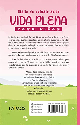 La Biblia de Estudio de la Vida Plena para Niñas se basa en la firme convicción de que todo aquel que acepta a Cristo puede tener el poder del Espíritu Santo, tal como lo narra el libro de Hechos en el capítulo dos. Ese mismo poder del Espíritu Santo que vemos obrar en la Biblia es para todo el que sigue a Jesús. Nuestro objetivo al publicar esta Biblia es proporcionar recursos que te ayudarán a estar lleno de la presencia del Dios Todopoderoso.