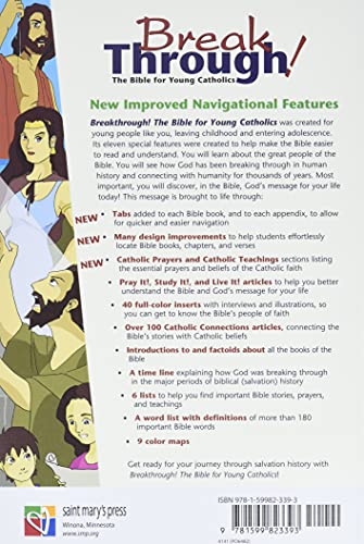 Using the Good News translation, Breakthrough! The Bible for Young Catholics was created for young people leaving childhood and entering adolescence. Its 10 special features were created to help make the Bible easier for young people to read and understand.