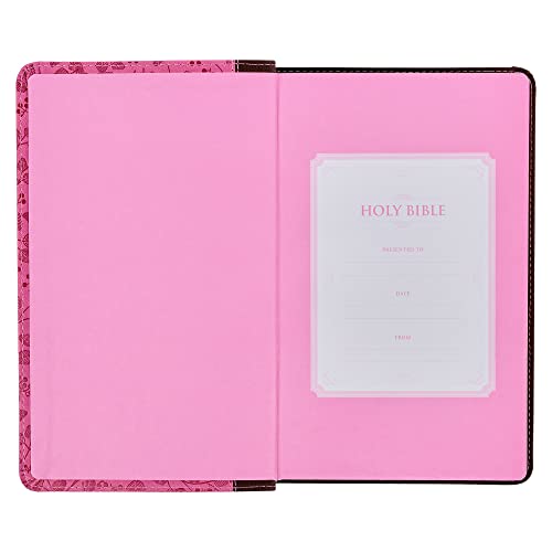 Give this Bible to mark a milestone in someone’s faith journey, as a baptism gift or a congratulatory gift for someone stepping into a leadership position at church. The Saddle Tan and Pink Faux Leather Giant Print Standard-size King James Version Bible with Thumb Index will be a treasured gift for years to come.