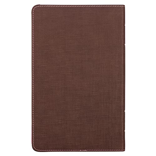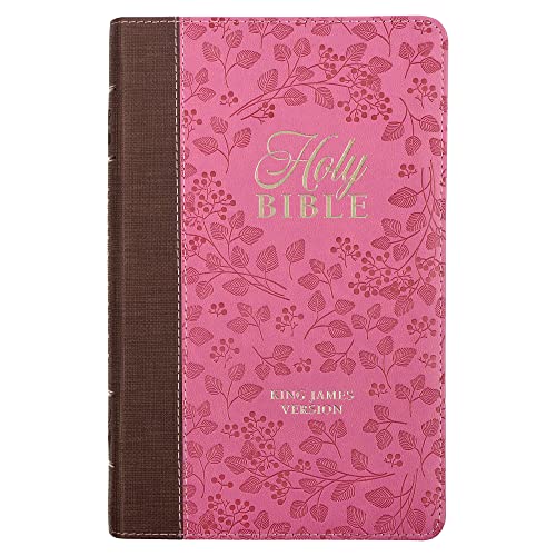 The large font of the Saddle Tan and Pink Faux Leather Giant Print Standard-size King James Version Bible with Thumb Index will aid those who need a little extra help reading the often tiny print of regular standard-size Bibles.