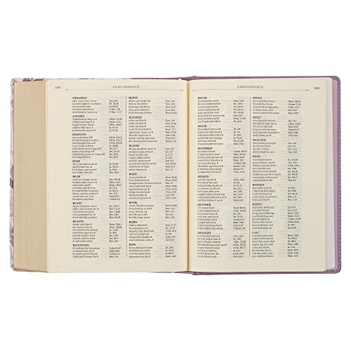 When you use the Purple Floral Faux Leather Hardcover King James Version Note-taking Bible, you can say goodbye to the days of trying to find the perfect journal for your morning devotions. With plenty of lined space, you can keep all your notes and reflections in one place, written out right next to God's Word.