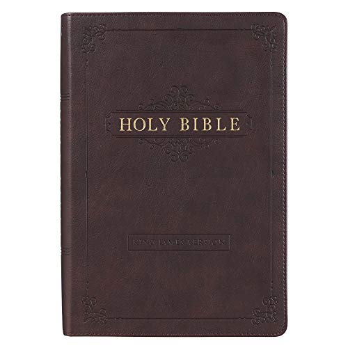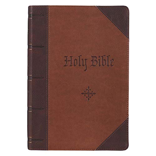 The Two-tone Brown Faux Leather Giant Print Full-size King James Version Bible offers an easy-to-read print in a simple yet classic design.