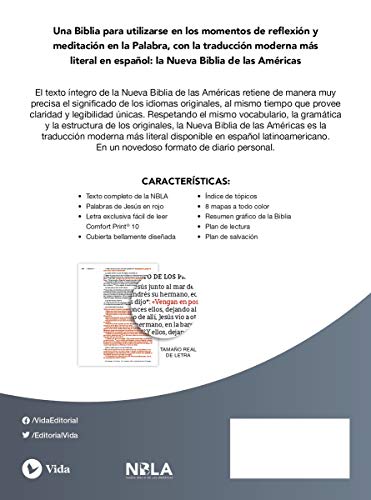 SPANISH EDITION: The full text of the Nueva Biblia de las Américas retains accurately the meaning of the original languages, providing at the same time of unique clarity and legibility. Keeping the same vocabulary, the grammar, and the structure of the original languages, the Nueva Biblia de las Américas is the most literal modern translation of the Bible available in Latin American Spanish, in an innovative journaling Bible format.