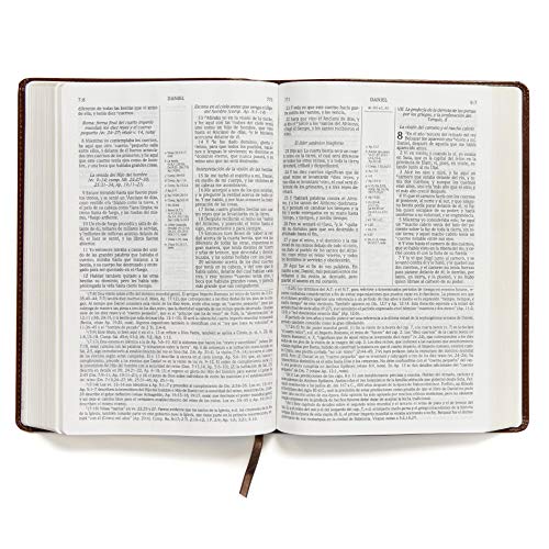 Based on the traditional RVR 1960 text, this Bible features the dispensational theology and eschatology first presented by American theologian Dr. C. I. Scofield (1843-1921). Available here in a reduced trim size dark brown simulated leather edition, features of this Bible include: